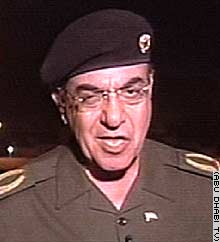 not in any "Their failure in this regard is abysmal. They want to tell the world changes thought - as a matter of fact, they do not respect the world, they want to tell taxpayers and the domestic public to keep them deceived. We will embroil them, confuse them and keep them in the quagmire. They have begun to tell more lies so that they might continue with the perpetration of their crimes. May they be accursed." "We will kill them all........most of them." "They are like a snake and we are going to cut it in pieces." "They do not even have control over themselves! Do not believe them!" "I would like to clarify a simple fact here: How can you lay siege to a whole country? Who is really under siege now? Baghdad cannot be besieged. Al-Nasiriyah cannot be besieged. Basra cannot be besieged." "That bastard the American Minister of Defense Rumsfeld, and I won't say shamelessly, because they don't know what shame means. These are criminals. The whole word can hear the warning sirens. This criminal sitting in the White House is a pathetic criminal and his Defense Minister deserves to be beaten. These criminals lie to the world because they are criminals by nature and conditioning. They consider this a military site! Shame on you! You will forever be shamed! You have ruined the reputation of the American people in the most terrible way! Shame on you! And we will destroy you!" "They are trapped in Umm Qasr. They are trapped near Basra. They are trapped near Nasiriyah. They are trapped near Najaf. They are trapped everywhere." Called Americans and Brits "Tarateer"– In Iraqi slang, Tartoor means a guy full of farts (i.e. hot air) "they are nowhere near the airport ..they are lost in the desert...they can not read a compass...they are retarded." "They are not in Baghdad. They are not in control of any airport. I tell you this. It is all a lie. They lie. It is a hollywood movie. You do not believe them." "Faltering forces of infidels cannot just enter a country of 26 million people and lay besiege to them! They are the ones who will find themselves under siege. Therefore, in reality whatever this miserable Rumsfeld has been saying, he was talking about his own forces. Now even the American command is under siege." "They tried to bring a small number of tanks and personnel carriers in through al-Durah but they were surrounded and most of their infidels had their throats cut." "Our estimates are that none of them will come out alive unless they surrender to us quickly." "We made them drink poison last night and Saddam Hussein's