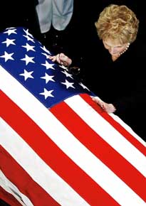 viewing his flag-draped casket (left, with former First Lady Nancy
