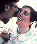 Terri smiling at the voice and touch of her mother, following the path of a