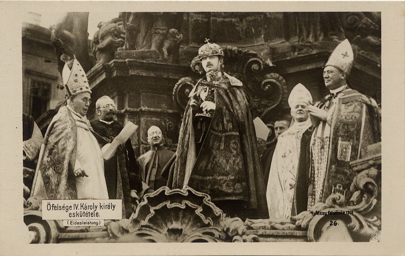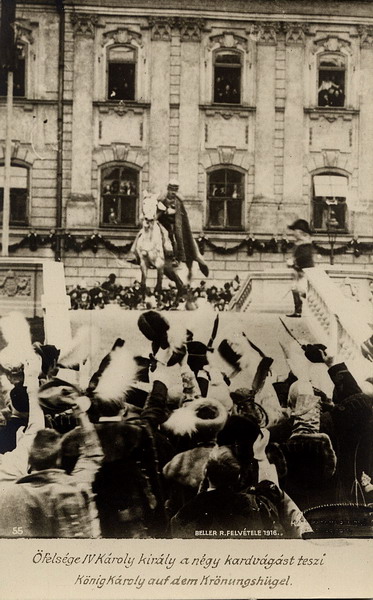This is a Hungarian photo of Emperor Karl I on horseback on his day of coronation. Notice that the card refers to Karl I under his Hungarian title, King Karoly IV.