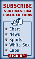 Today's news Archive Census Commentary Editorials Education Elections Lottery Obituaries Politics Religion Special sections Weather Weather cam War on Terror War in Iraq Andrade Brown Falsani Greeley Higgins Jackson Kupcinet Laney Martire Mitchell Neal Novak Ontiveros O'Rourke O'Sullivan Pickett Quick Takes Richards Roeper Roeser Sneed Steinberg Steyn Sweet Washington Will Wiser Other Views ![]() |