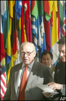 with this knowledge, UN chief weapons inspector Hans Blix (right)